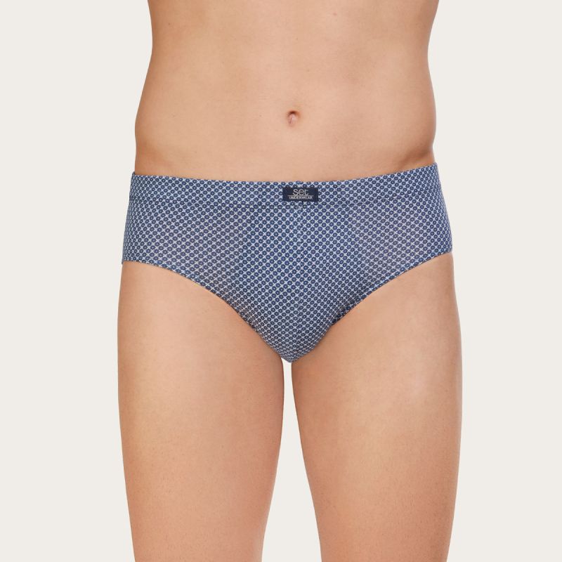 A SET cotton brief that dresses with elegance from within. Manufactured in quality cotton at our Mataró factory, this model features a geometric print that covers the entire fabric, creating an elegant and formal effect with a lot of personality. Available in navy and forest green, two tones with character that transmit distinction in every detail. The cotton-covered elastic waistband guarantees a soft and comfortable fit for the whole day.