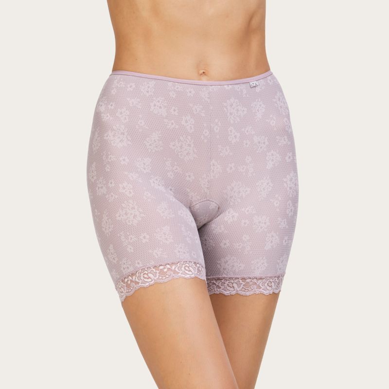 AVET culotte-style shorts that turn the everyday into a special moment.Made of fine, soft microfiber at our factory in Mataró, this model wraps the body like a second skin with a subtle and delicate sheer effect. Its fabric mimics floral lace, creating a romantic and sophisticated look that you'll fall in love with at first sight. A lace finish around the legs crowns the piece with a jewel-like touch that makes it irresistible.Available in mauve and petal, two pastel shades that enhance its character. Features a cotton terry cloth lining in the intimate area for optimal hygiene.