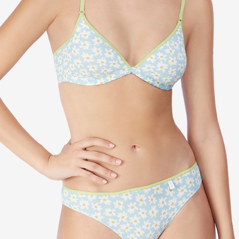 Avet lingerie set for women including a bra without hoop and a bikini brief made with quality cotton (Size M). This set is available in two different colors and it has a cheerful and summery daisies print. If you’re looking for a comfy and beautiful set, this one is perfect. Locally designed and made in Spain.