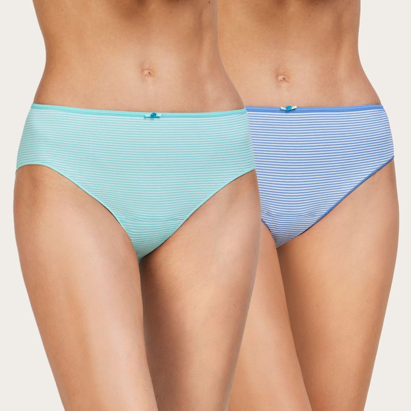 Duo pack consisting of two AVET midi panties, combining freshness and distinction in every detail.This pack features two striped cotton midi panties with a nod to our history: the iconic AVET rose, redesigned and more contemporary than ever, sits at the waist as a signature mark. A small detail that speaks volumes. Pair them with the matching camisole 75081.Available in two high-character combinations: blue and green, or coral and blue. Fresh, cheerful, and perfect for everyday wear.